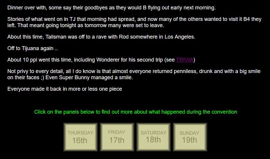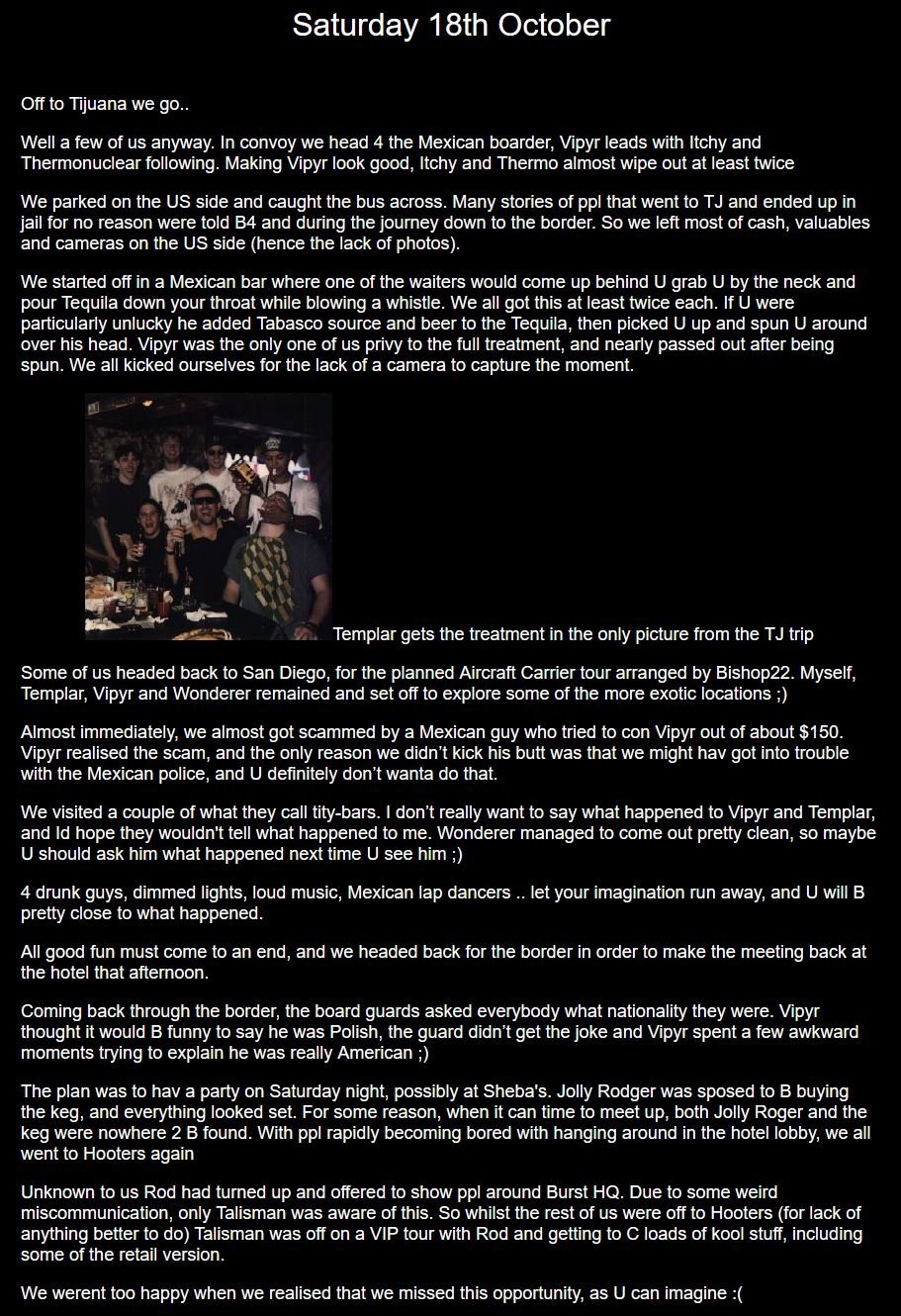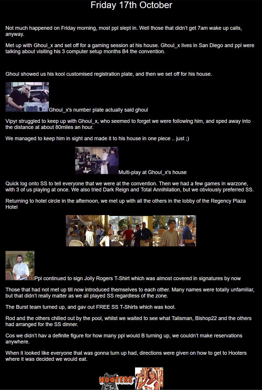 ironbuket Posted Saturday at 03:06 AM Author Report Posted Saturday at 03:06 AM IRL Convention 01 – October 1997 San Diego California I originally posted a news story about this convention on a news website called Subscene in 1997 (my player name was Warhammer back then). I think maybe I ran that website, but honestly it has been so long I cant recall the details. I had the intention of copying the story text and pasting it in here like a normal post, but the original story has some images posted with related text next to them making that difficult to pull off recreating it here I decided instead to just post images of the original story as it appeared on the website when it was published. Sorry for the inaccessibility but I think this is the better choice I’m also sorry for putting you through the way I wrote back then, I was young and thought it was cool at the time 😅